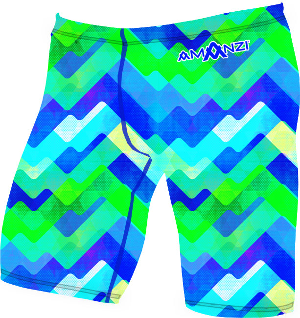 The AMANZI Prism Beat Jammers, are a versatile racing swimsuit designed for entry-level swimmers as well as training purposes. The Jammers feature an elasticated waistband with a hidden drawstring cord to provide a fully adjustable fit for a secure and comfortable experience while swimming. The suit is constructed with only two panels, reducing the number of seams to an inner leg, crutch, and backside seam, allowing for a smooth and streamlined look. The leg length varies between 35cm - 45cm depending on the size, making it suitable for all body types. Whether you're looking to improve your skills or compete in a race, the AMANZI Jammers are the perfect choice for any swimmer.