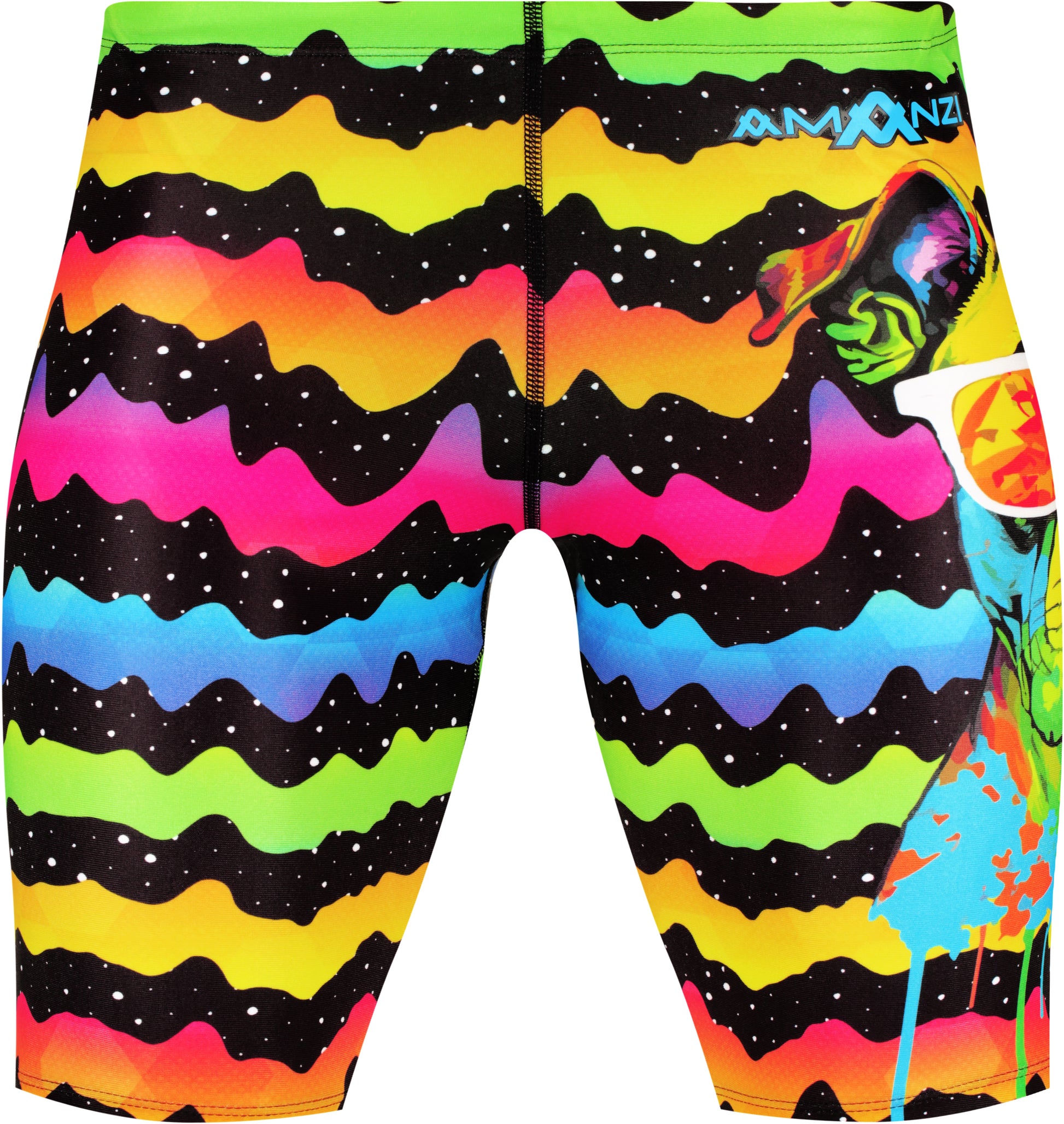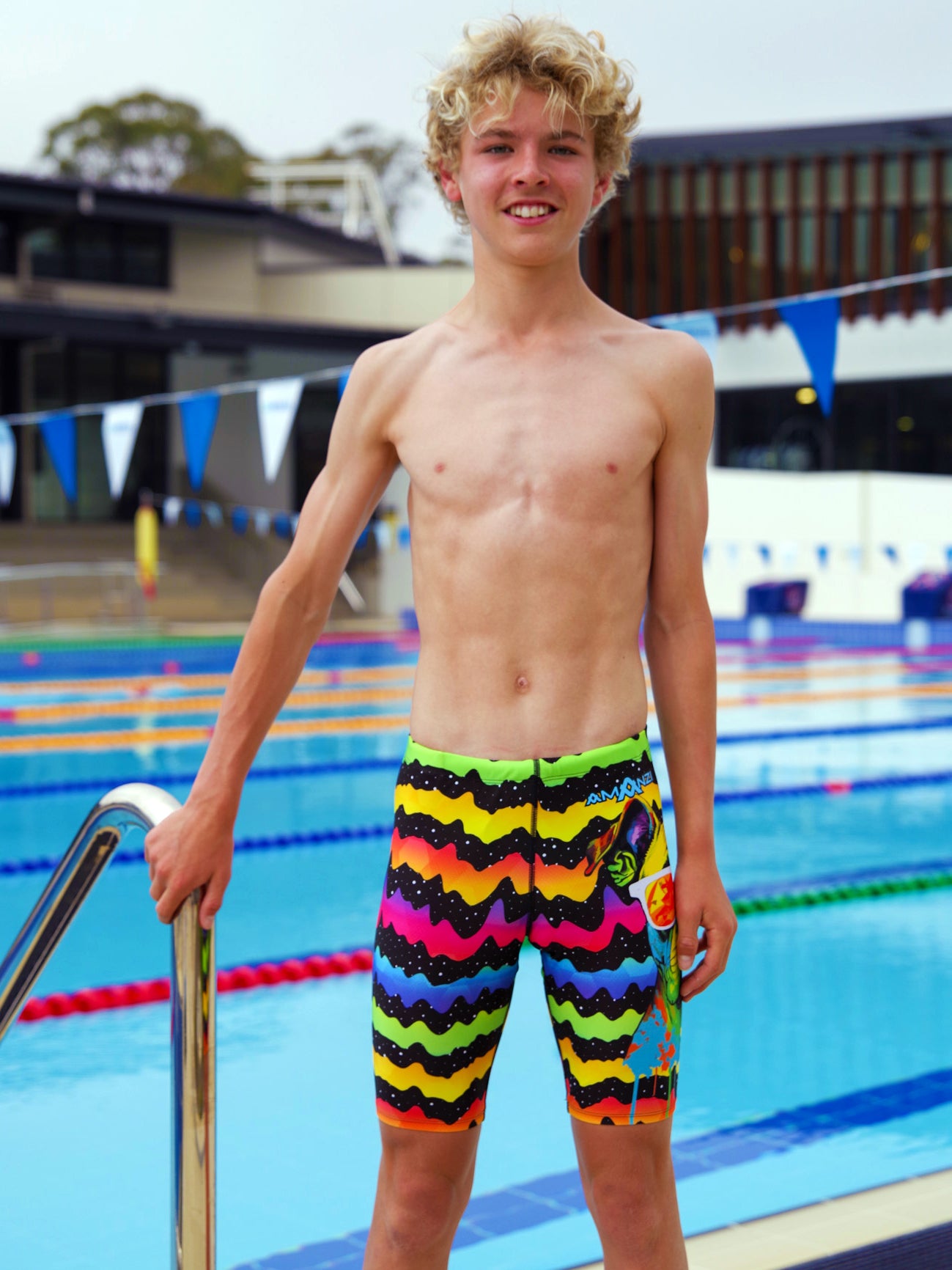 The AMANZI Drippin Jammers, are a versatile racing swimsuit designed for entry-level swimmers as well as training purposes. The Jammers feature an elasticated waistband with a hidden drawstring cord to provide a fully adjustable fit for a secure and comfortable experience while swimming. The suit is constructed with only two panels, reducing the number of seams to an inner leg, crutch, and backside seam, allowing for a smooth and streamlined look. The leg length varies between 35cm - 45cm depending on the size, making it suitable for all body types. Whether you're looking to improve your skills or compete in a race, the AMANZI Jammers are the perfect choice for any swimmer.