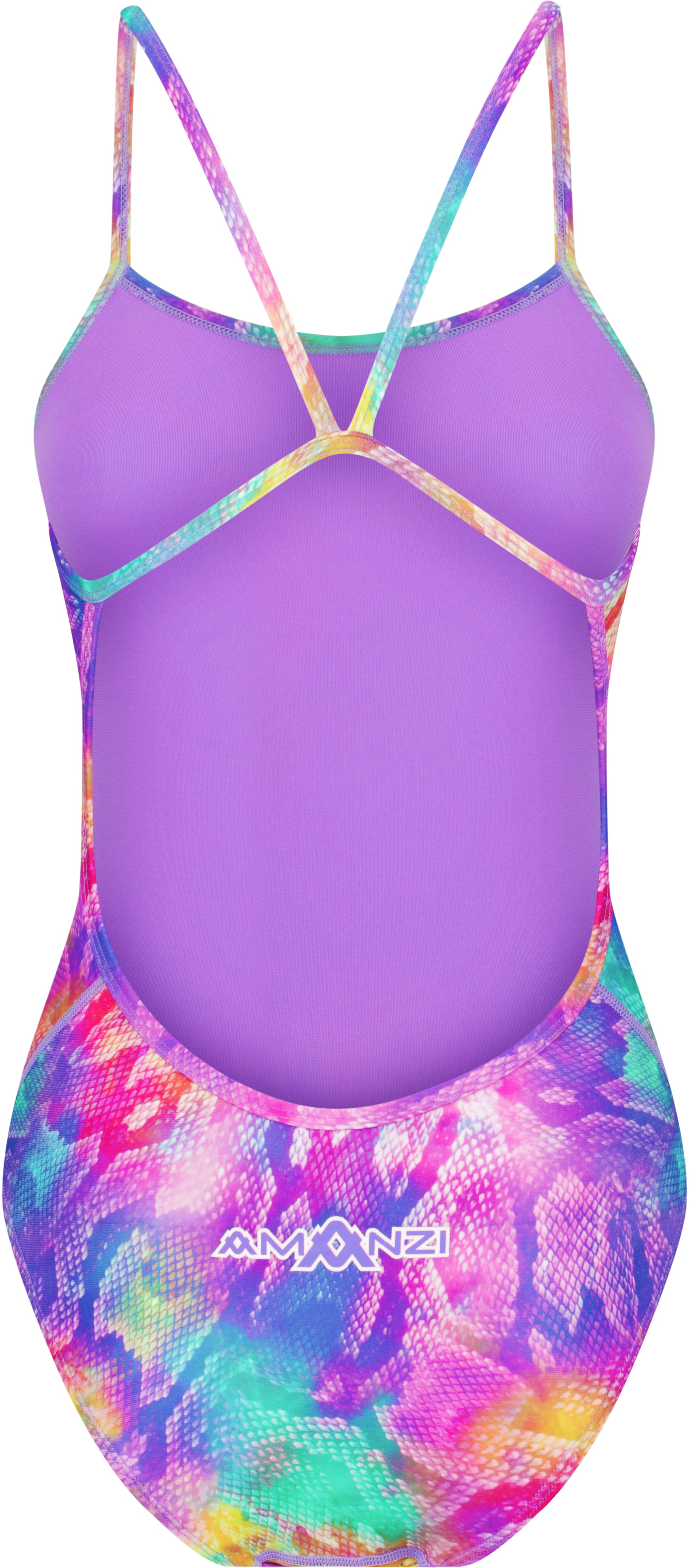 The AMANZI Dreamscale Proback One Piece is the perfect swimsuit for both competitive and active swimmers looking for a versatile and comfortable option. Its thin shoulder straps provide ultimate freedom of movement while reducing strain on the neck and shoulder muscles. The wide open back design follows the body's natural contours, providing an ergonomic fit for superior comfort. The medium cut leg is universally flattering and suitable for all body types.