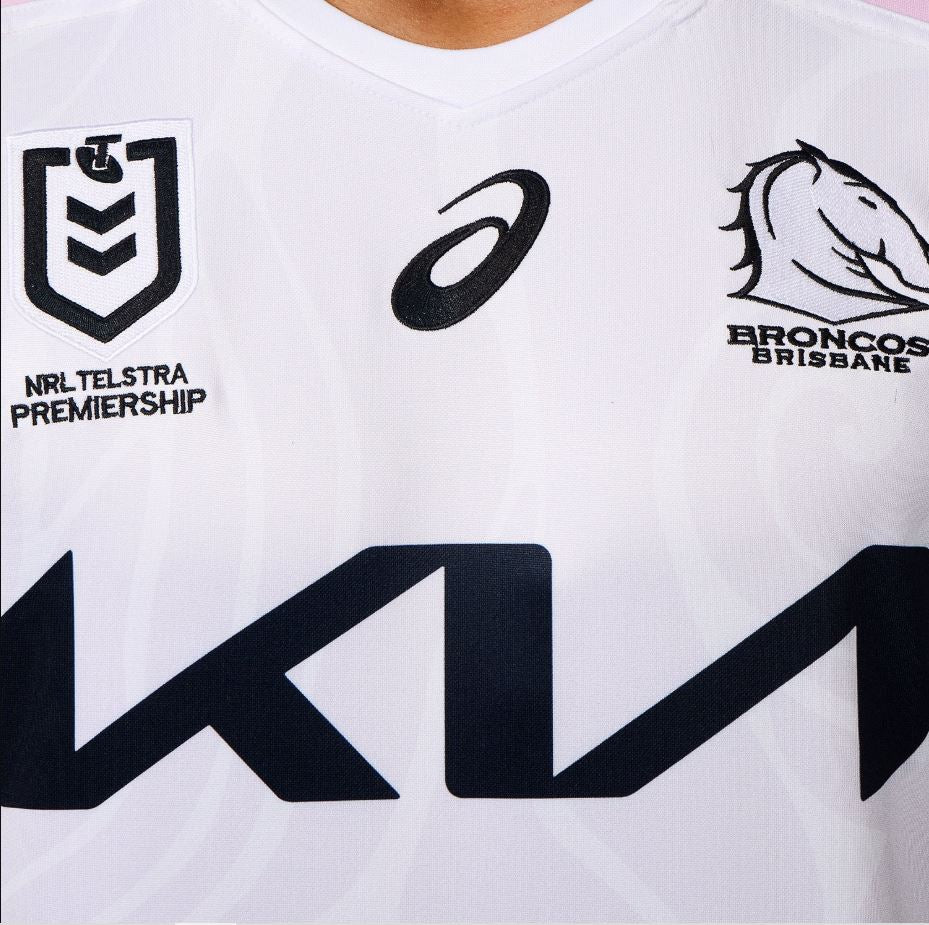 Embroidered Broncos, Asics & NRL logos on chest