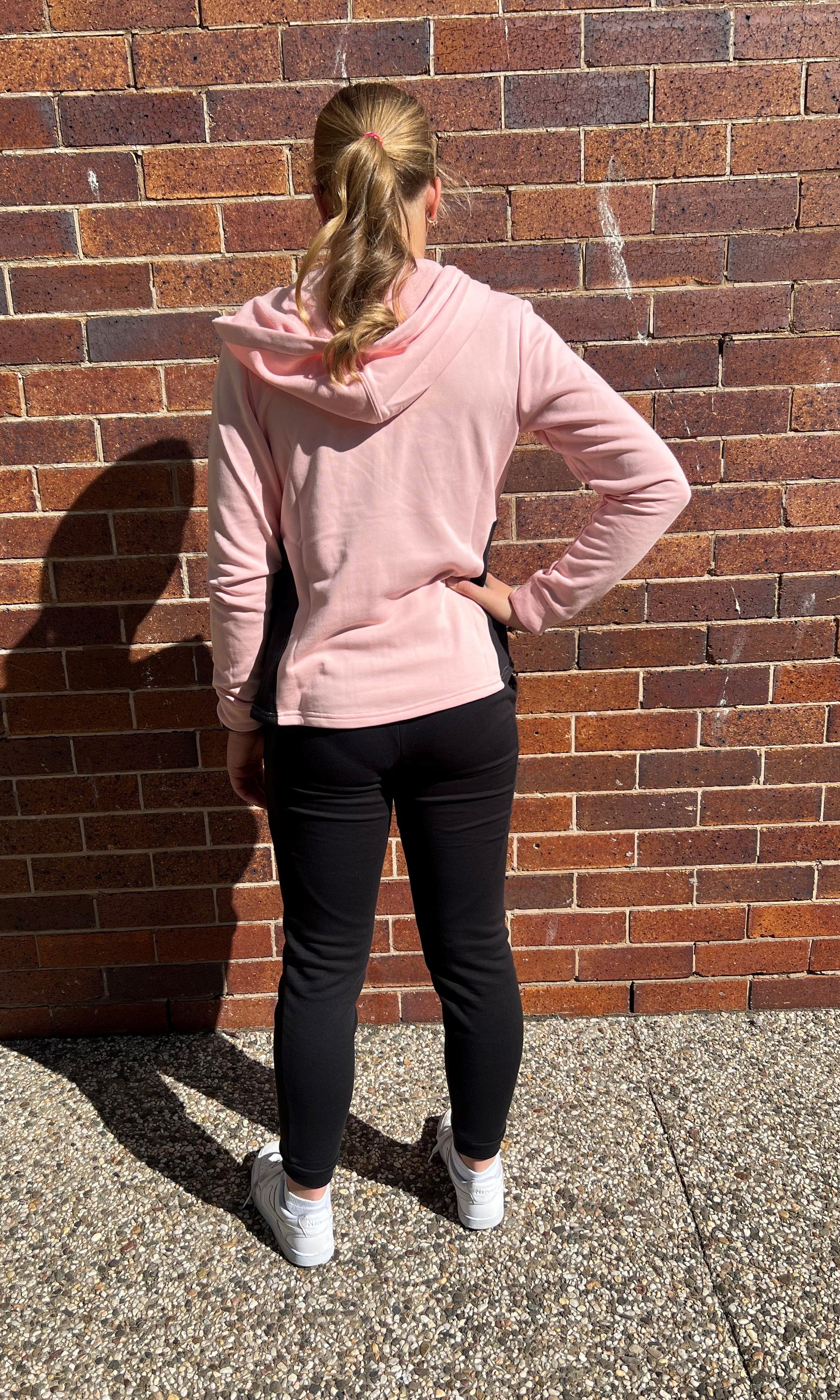 - Rounded back on the hoodie