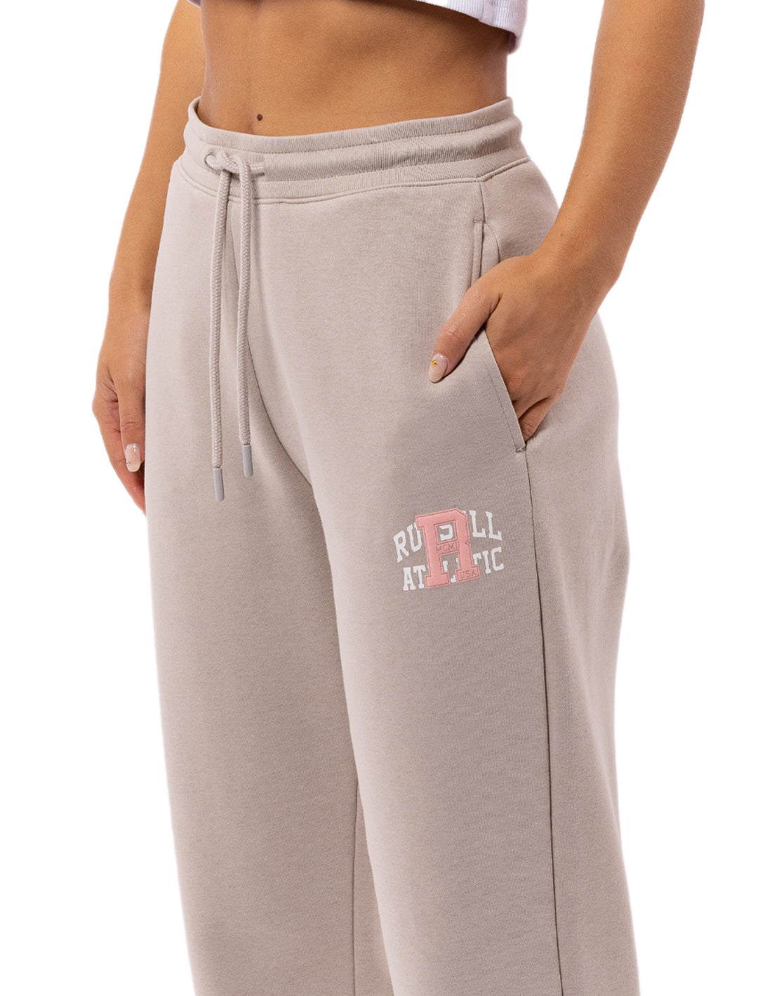 Stylish and comfy? We've got you covered! These Women's "R" Track Pant in cloud are the perfect essential for your wardrobe. Featuring our small "R" logo, a relaxed fit and crafted from premium cotton. Complete the look with a Russell Athletic crew, tanks or hoodies.