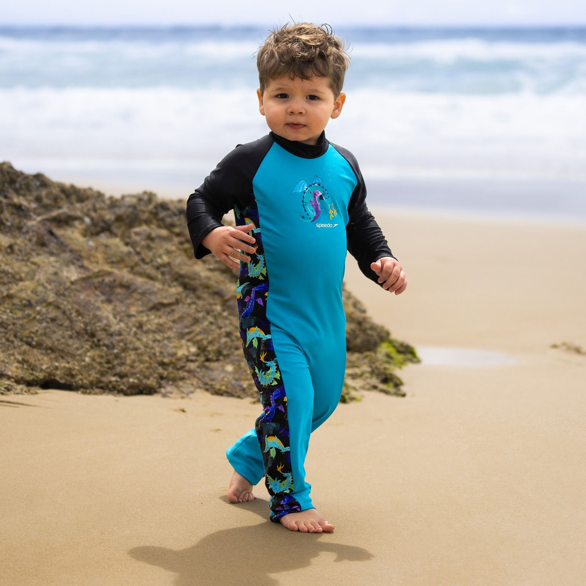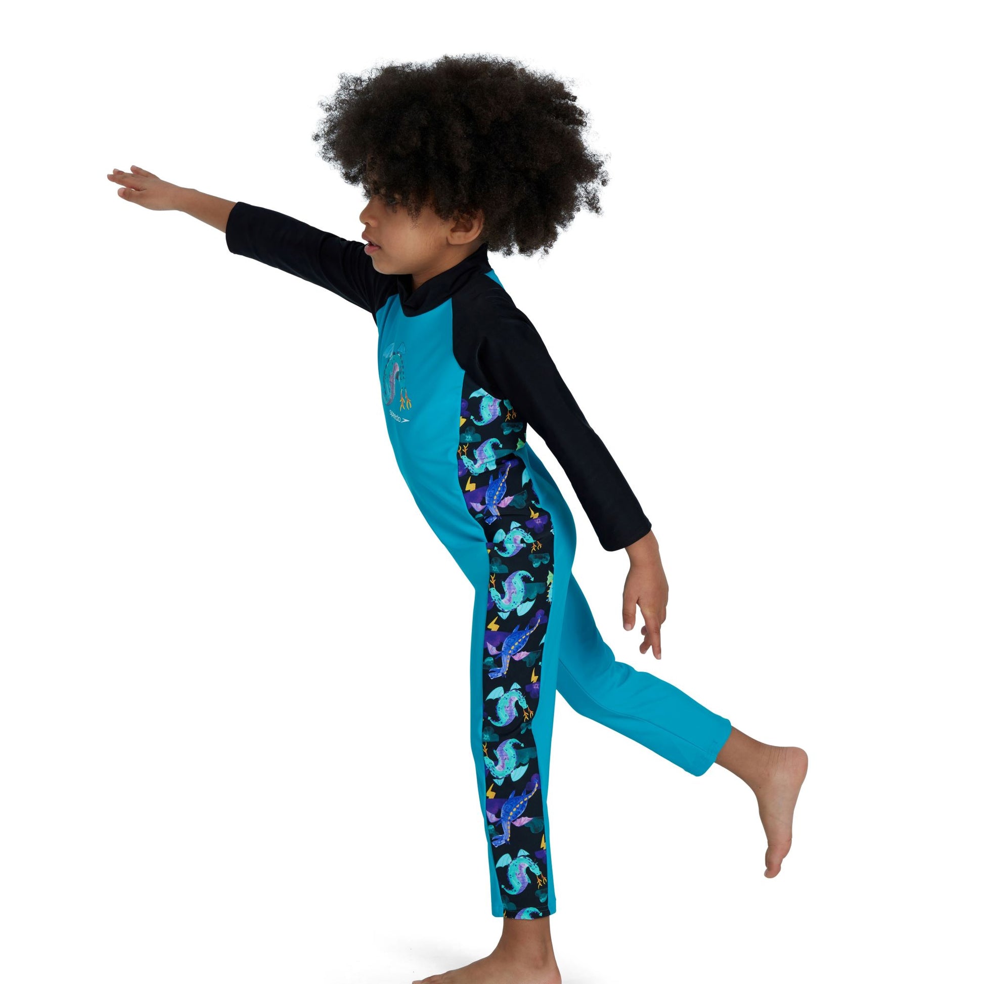 Every swim's an adventure with our Learn to Swim range. Escape to mystical lands with this fun, full-coverage All-In-One Sun Suit, featuring a fire-breathing dragon character and colourful dragon panel print. Ideal for beach holidays and fun days outdoors, the suit provides SPF40+ fabric sun protection and includes a zip-up back for easy wet-and-dry changing. Soft and stretchy, our Endurance10 fabric provides higher chlorine resistance than standard swimwear fabrics and fits like new for longer with CREORA® HighClo™.